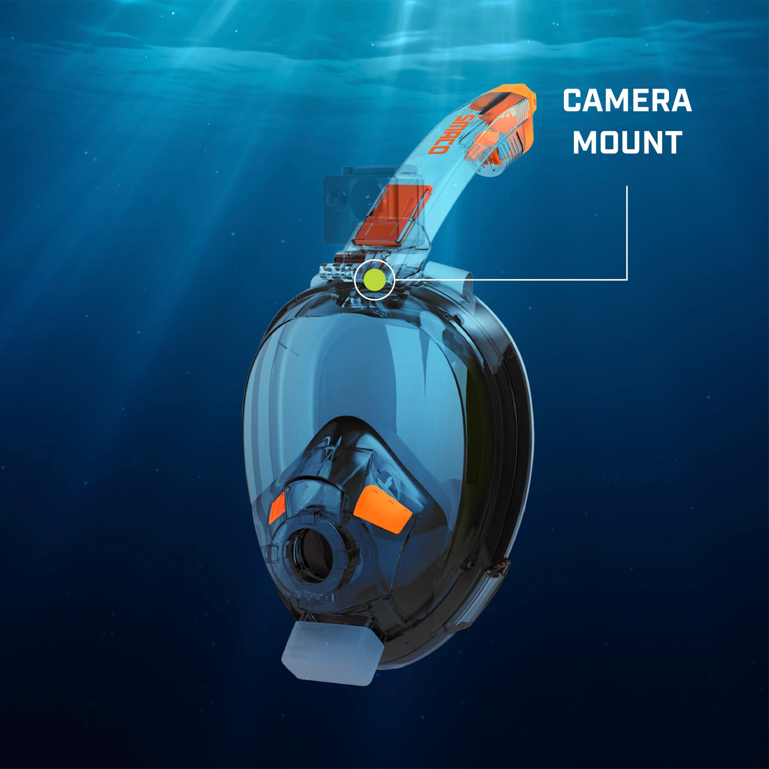 Capture hands-free underwater footage by easily attaching your action camera to the top of the mask. Perfect for snorkeling, shallow diving, or documenting your underwater adventure.