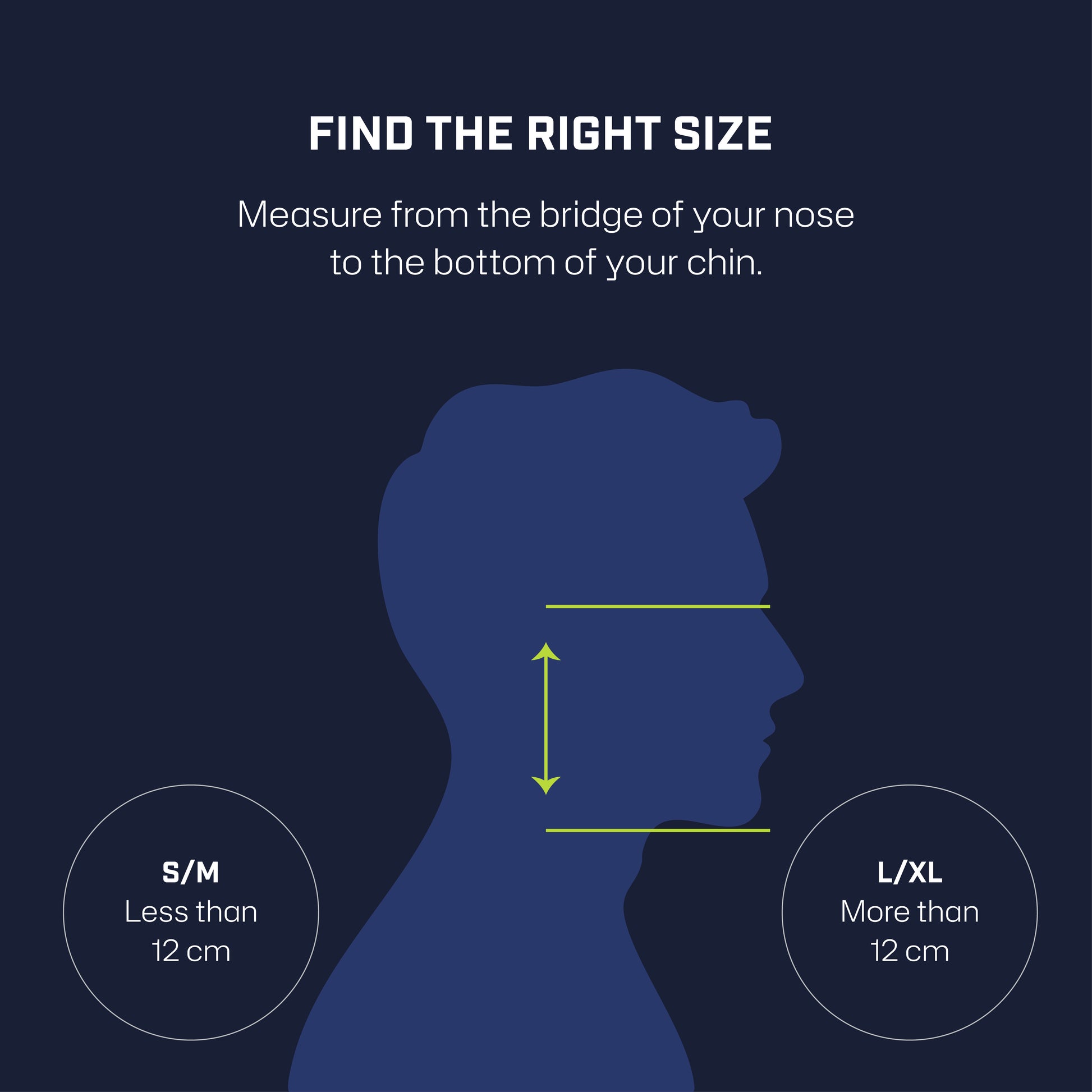 • Adjust the elastic straps for a secure fit around the chin and forehead.