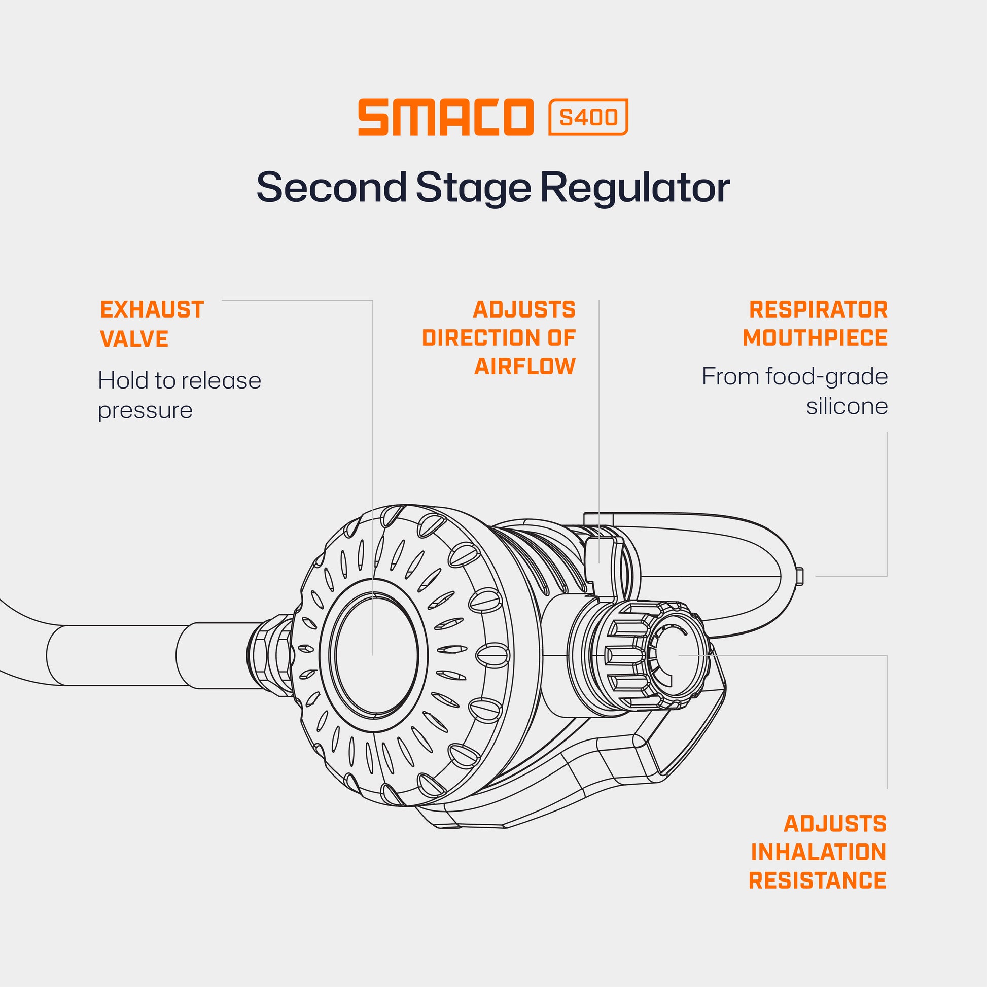The S400 is compact, lightweight, and built for short underwater adventures or reliable backup use. Its fixed pressure gauge sits directly on the first stage regulator for quick, at-a-glance air checks. Paired with the included diving bag, it’s easy to carry, simple to set up, and always ready for your next dive.
